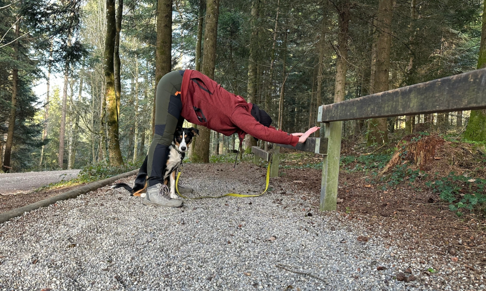Sicherheit: Die Teilnahme erfolgt auf eigenes Risiko (Mensch und Hund). Bitte sag immer sofort Bescheid, wenn eine Übung zu schwer ist oder du dich unwohl fühlst.